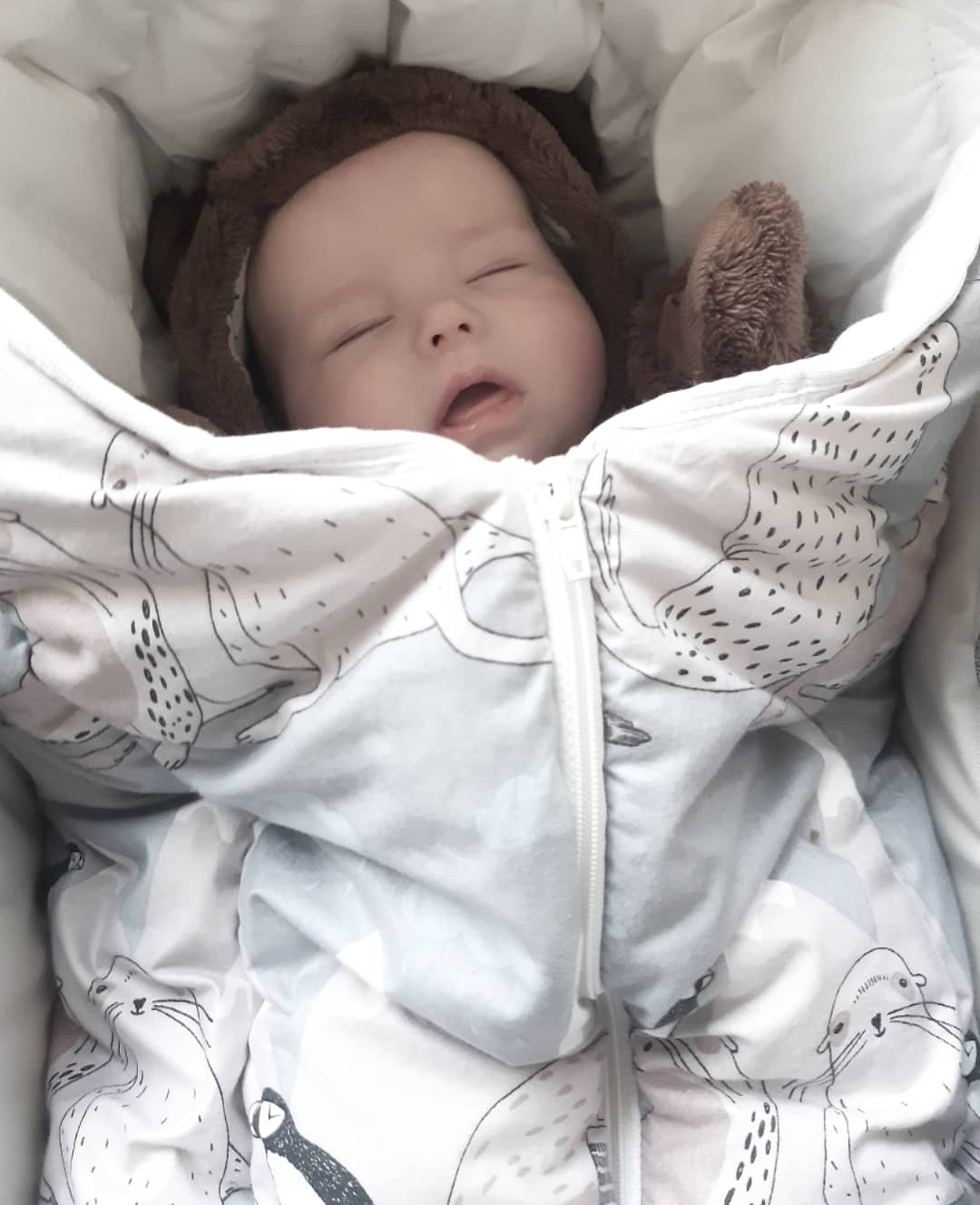 Yöllä poitsu herää syömään 2-3 kertaa, joskus jopa vain kerran, korvikemaitoa yleensä 110ml kerrallaan. Olemme olleet tyytyväisiä öihin. Hän nukkuu, herää syömään, jatkaa unia. Hänet nukutetaan yöksi omaan sänkyyn, mutta yöllä herätessään siirretään viereen. Päiväunet hän tykkää nukkua ulkona vaunuissa makuupussin sisällä, hih. Päiväunia nukutaan 2-3 kertaa päivässä, unet ovat yleensä kestoltaan 2-4 tuntia.